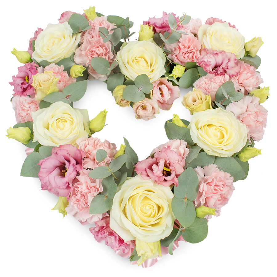 This artistically crafted bouquet is designed to celebrate life and honor cherished memories with sophistication. The arrangement beautifully intermingles classic white roses, subtle pink carnations, and soft pink lisianthus, all enhanced by the natural charm of eucalyptus leaves. Each flower is hand-selected for its premium quality, creating a tribute that is as fresh as it is elegant.